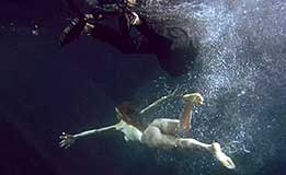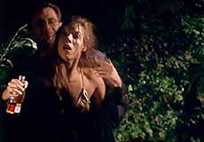 This film followed director Nikos Nikolaidis' legendary Xtreme horror movie SINGAPORE SLING, and many of the same concepts are obvious from the start. Upon its release, Nikos said: "This is the beginning of a new saga, more personal, on subjects like damned loves, friendship, traitorship and more." And like SLING, two women - Elsa [Vicky Harris] and Vera [Valeria Hristodoulidou], immersed in their madness - are centerstage. The surreal narrative deals with two women who may have killed a man [his body is floating in the swimming pool] and they are in possession of a mysterious suitcase that belonged to him. Seemingly, both Elsa and Vera loved the man [early in the film, Elsa muses "Killing is easy when you love someone,"]. As the narrative continues, the suitcase becomes less important and the two women concentrate more on brutalizing each other and making love. At one point, they dump the man's corpse in the sea. But he returns - with only smashed glasses as any evidence of murder - to meet Vera in the garden. Meanwhile, Elsa is killing herself. Or is she? A lot of people die, but nobody is dead. Or is is everybody dead and living in Hell?