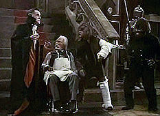 Quasimodo, Dracula and the Wolfman who immediately decide the intruders