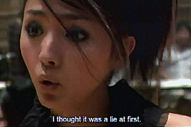 Here, it is fascinating to see a young Hikari singing Avril Lavigne songs under the exquisite direction of Sion Sono. Incidentally, for the genre fans who have been out of the pop culture loop since 1999, Avril Lavigne is a Canadian singer, considered the key performer in the new-wave pop/punk music movement. She is also an accomplished musician [drums, piano and guitar], an actress [both TV and movies] and a top-tier designer [owner of her own clothes line called Abbey Dawn Fashions.] Her list of world-wide hits over the past 22 years include Complicated, Girlfriend, Sk8er Boim, My Happy Ending and When You're Gone.