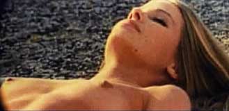 a bra in panty-flashing miniskirts and sunbathes nude on the roof of the