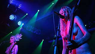 Performing in the nude, they warn the audience at the start of the concert: