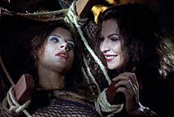 This film followed director Nikos Nikolaidis' legendary Xtreme horror movie SINGAPORE SLING, and many of the same concepts are obvious from the start. Upon its release, Nikos said: "This is the beginning of a new saga, more personal, on subjects like damned loves, friendship, traitorship and more." And like SLING, two women - Elsa [Vicky Harris] and Vera [Valeria Hristodoulidou], immersed in their madness - are centerstage. The surreal narrative deals with two women who may have killed a man [his body is floating in the swimming pool] and they are in possession of a mysterious suitcase that belonged to him. Seemingly, both Elsa and Vera loved the man [early in the film, Elsa muses "Killing is easy when you love someone,"]. As the narrative continues, the suitcase becomes less important and the two women concentrate more on brutalizing each other and making love. At one point, they dump the man's corpse in the sea. But he returns - with only smashed glasses as any evidence of murder - to meet Vera in the garden. Meanwhile, Elsa is killing herself. Or is she? A lot of people die, but nobody is dead. Or is is everybody dead and living in Hell?