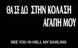 Original Greek title THA SE DO STIN KOLASI, AGAPI MOU [See You In Hell, My Darling]