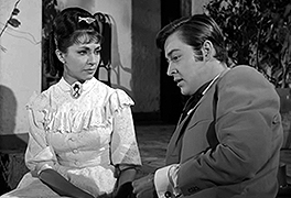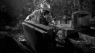 Rio Kid (Fernando Luján) gets kicks from roaming around the West, on lookout for brutish gunfighters, eliminating them with his lightning-speed draw. According to legend [and seemingly based on some reality] the bodies of his rivals oddly disappear from their graves soon after burial. The Rio Kid has been active for decades, but during that time, he hasn't aged at all. That's because he's a vampire. His home is a cemetery in San Diego. And Rio's very existence has [somehow] turned San Diego into a decrepit ghost town [not fully explained how or why, but the attempt is made]. As a note: the Rio Kid and his brides have the most amazing vampire fangs in cinema (see top of page, left), looking more like walrus tusks.
