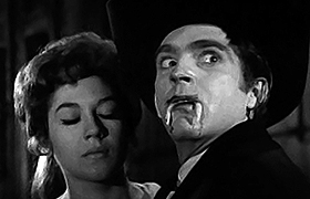 The story deals with the Rio Kid, a vampire gunslinger who challenges quick-draw thugs in the old West. Considering the popularity of both Westerns and Horror in the mid '60, this is not a surprising mixture of genres. However, it IS surprising that so few films actually fall into this category [the most popular would be Curse of the Undead in 1959, with contenders Jesse James meets Frankenstein's Daughter (1966), John Carradine's Billy the Kid vs Dracula (1966), The Fiend Who Walked the West (1958) and - arguably - El Topo (1970) and Django the Bastard (1969). That seems to be pretty much it]. So, Alfredo Crevenna's movie is something of a rarity.