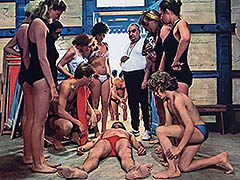 to watch the naked girls' swim team in the adjoining cabana; a priest